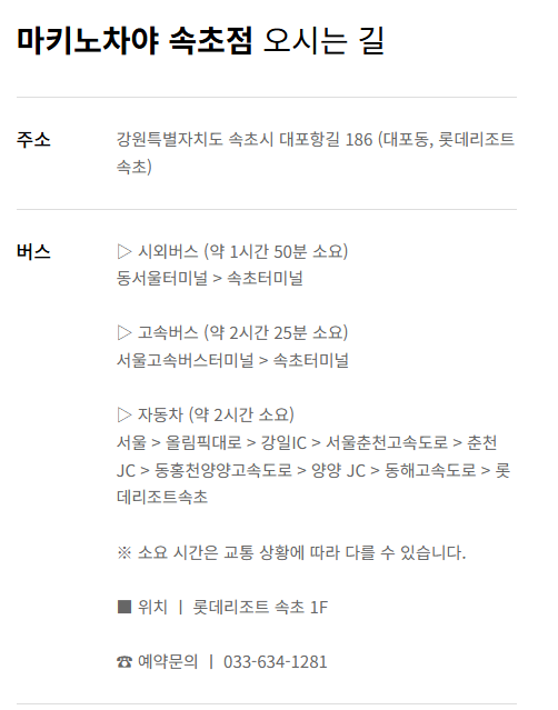- 주소: 강원도 속초시 대포항길 186 롯데리조트 호텔 1층