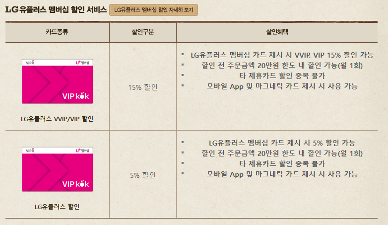 - LG U+ : 제휴카드에 따라 할인 가능