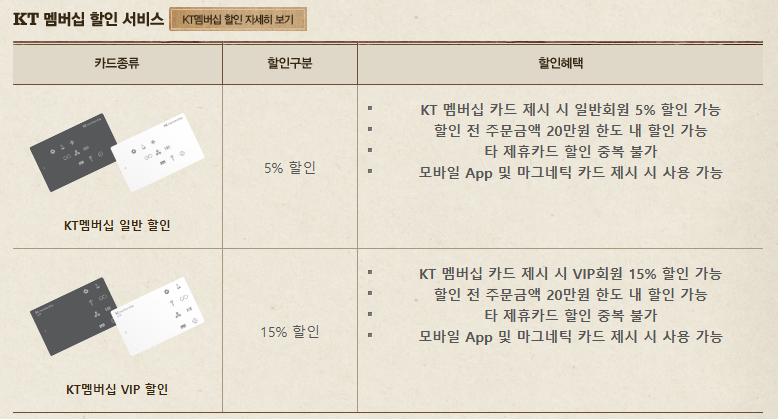 - KT 멤버십 : 10% 할인