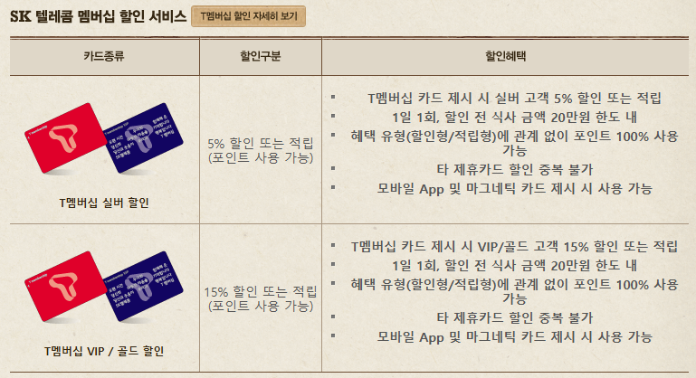 - SKT T멤버십 : 10% 할인
